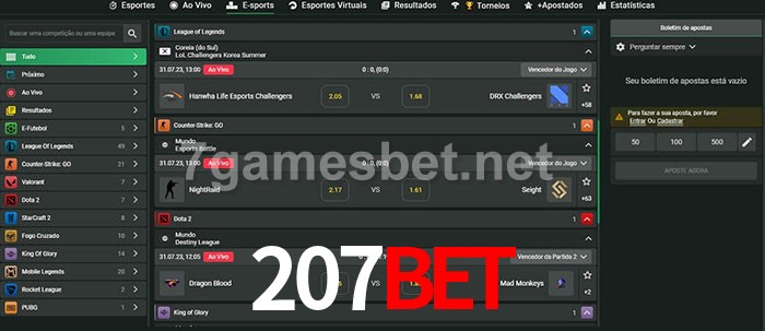 A aposta 207Bet oferece aos jogadores a experiência mais conveniente de apostas em eSports!